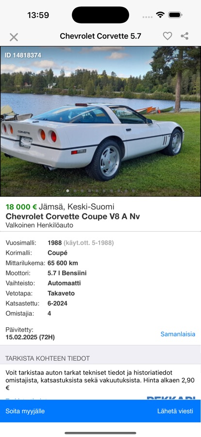 Nettiauto on Suomen suosituin autojen kauppapaikka, josta löydät kaikki vaihtoautot ja uudet autot. Osta, myy ja vaihda autoja mutkattomasti. Nettiauto-sovelluksessa voit hakea kaikkia Nettiautossa myynnissä olevia käytettyjä ja uusia autoja tarkoilla hakukriteereillä, tallentaa suosikkihakusi ja merkata kiinnostavat ilmoitukset suosikkilistalle. Jokaisesta myynnissä olevasta autosta löytyy 1-24 kuvaa, tarkat tekniset tiedot ja myyjän yhteystiedot. Voit myös lukea myyjälle esitettyjä kysymyksiä ja nähdä myyjän sijainnin kartalla ja lähettää myyjälle yksityisviestejä. Kirjaudu sisään Alma-tunnuksillasi niin voit jättää ja hallita omia ilmoituksia sekä vastata viesteihin.