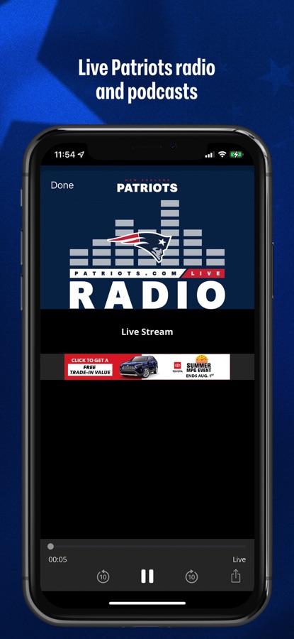 — Live Patriots Audio including “Patriots Unfiltered” and Pre & Postgame shows