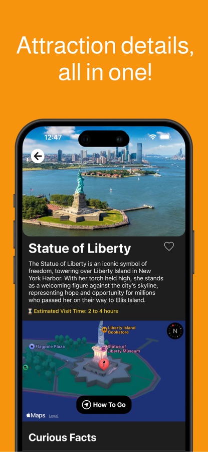 ДОПОЛНЕННАЯ РЕАЛЬНОСТЬ, в отличии от других путеводителей, с данной программой Вы сможете открывать для себя города с помощью лучшего инструмента на Вашем iPhone или iPad – дополненной реальности AR – просто нажмите кнопку AR, повернитесь вогруг себя и Вы увидите на экране расположение самых интерестных достопримечательностей и информацию о том, как их найти. Вы также сможете использовать прокрутку для поиска ближайших или самых отдаленных достопримечательностей.