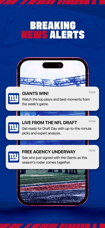 — Message Center: Get the latest breaking news, exclusive offers, and important game-day info, all delivered directly to your device.Stay connected, stay informed, and never miss a moment with the New York Giants mobile app.