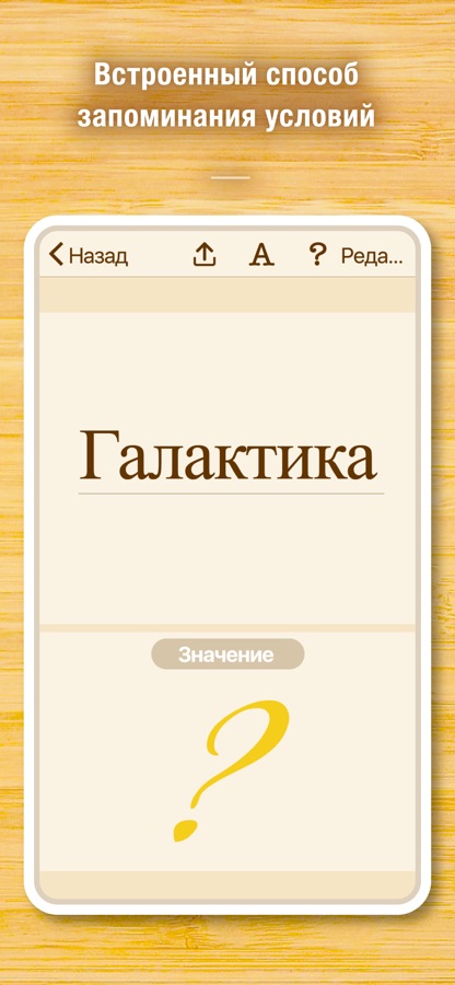 Режим «Мемо» скрывает значение слов. Коснитесь экрана, чтобы снова увидеть значение, которое полезно для изучения слов.