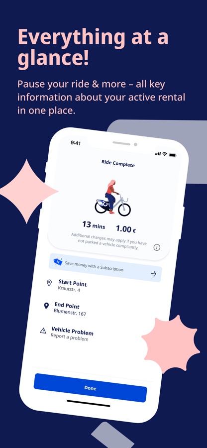 С помощью приложения Вы сможете найти свободные велосипеды и сразу же взять их на прокат. С помощью встроенного распознавателя штрих-кода Вы сможете еще быстрее выбрать соответственно помеченные велосипеды или автоматически распознать станцию возврата.