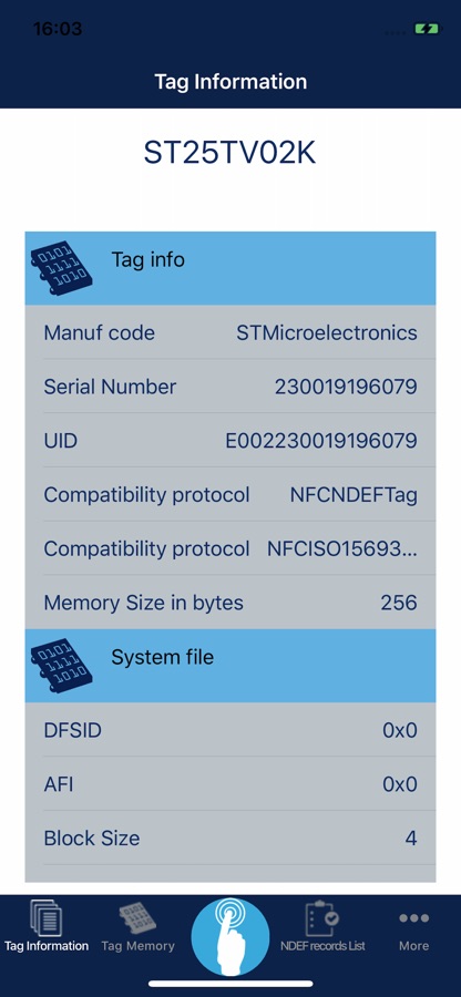 • Support every STMicroelectronics ST25 Type5 & Type4A series tags.