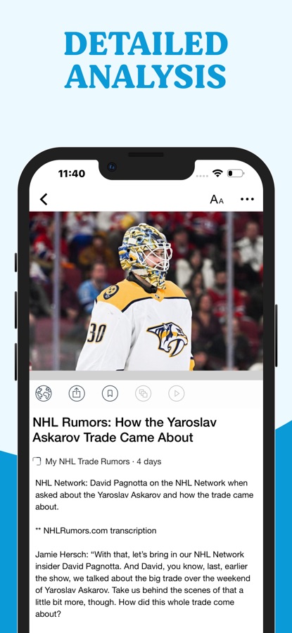 Your one stop shop for NHL Trade and draft news. Keep track of all players in the NHL in one app. All the news, rumors, scores and highlights, see who will be traded and where they are going.