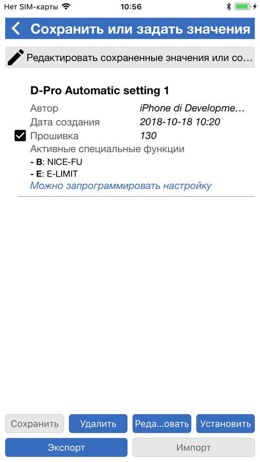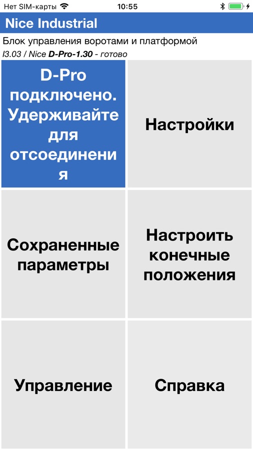 Приложение Nice Industrial — это самый передовой и быстрый инструмент для специалистов по пуско-наладке и обслуживанию приводов для промышленных ворот. Благодаря простому и дружественному пользовательскому интерфейсу он позволяет устанавливать предельные позиции, изменять и сохранять все параметры и функции автоматического управления Nice D-Pro. Приложение Nice Industrial также позволяет быстро обновлять прошивку, передавать сохраненные параметры с одного блока управления — D-Pro Automatic на другой, что позволяет быстро установить группу панелей управления.