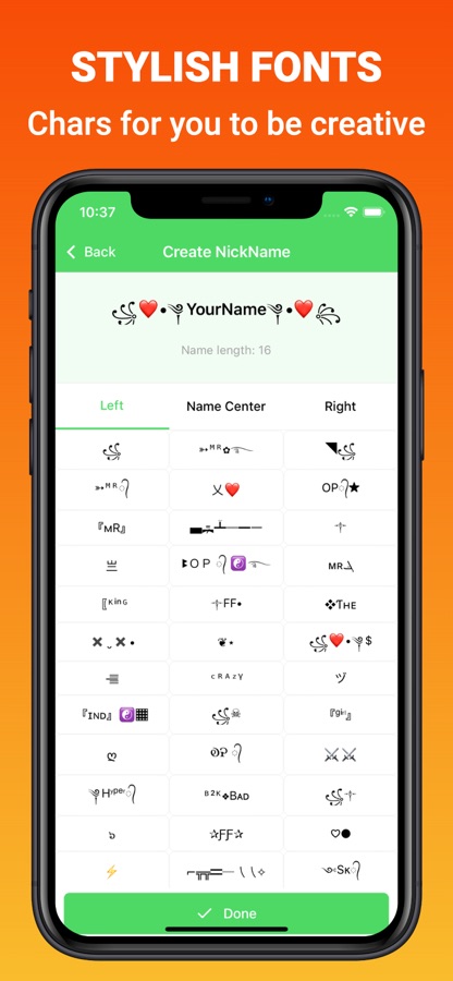Distinguish yourself from other players in the game with this font-changing app. It is a one-stop destination for to all the components to make the name.