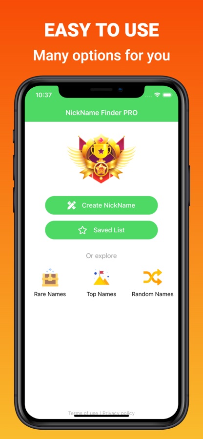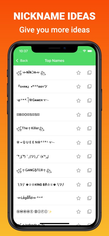Download this easy, fast and free app and look like a «Hero» with a super stylish name in your games. You can generate a random name and modify it to your liking. Create attention-grabbing usernames without worrying about whether your favourite game will allow it or not!