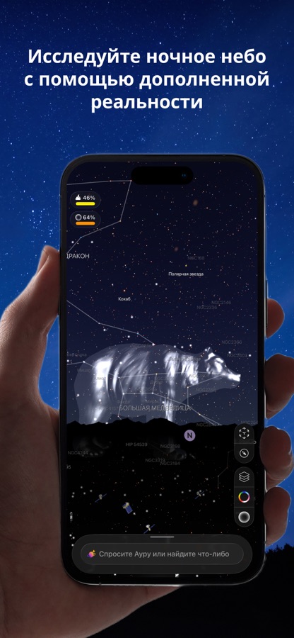 С его помощью вы сможете быстро найти звезду, планету, созвездия и спутники у вас над головой. Для этого просто наведите iPhone, iPad или Apple Watch на ночное небо и наблюдайте, как перед вашими глазами происходит магия. Чтобы найти определенное созвездие или пролетающую МКС, откройте приложение Night Sky, которое не только покажет их на небе, но и расскажет о них в дополненной реальности!