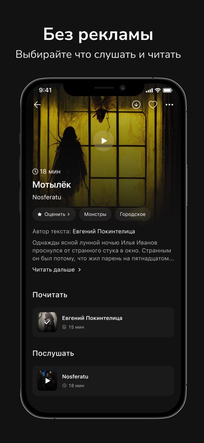 Хотите пощекотать нервы на ночь? В Night Story можно читать и слушать страшные истории на любой вкус: от городских легенд и страшилок для леденящих душу хоррор рассказов.