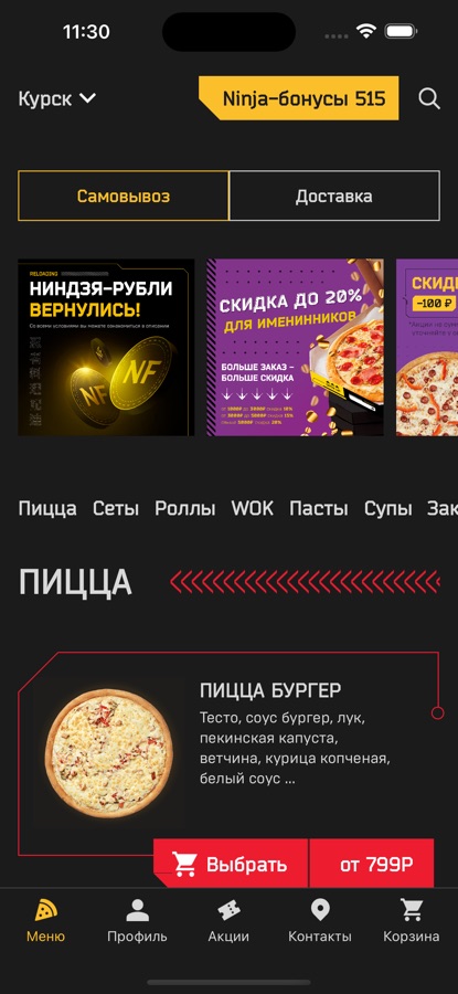В меню найдешь не только пиццу и роллы, но и сеты, лапшу WOK, пасту, супы и закуски — под настроение или на компанию.