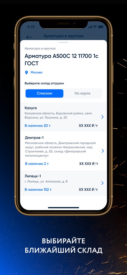 ∙ Получить информацию о ценах, выгодных предложениях и наличии металлоизделий на складах в выбранном регионе.