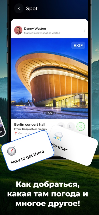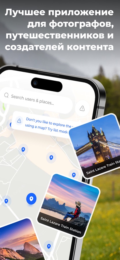 Загрузите собственные фотографии из путешествий и поделитесь своей историей в приложении. Вдохновляйте других путешественников и дайте им больше идей для фотографии.
