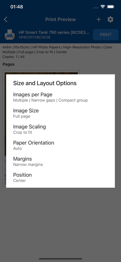 • Печать фотографий и изображений в форматах JPG, PNG, GIF и WEBP
