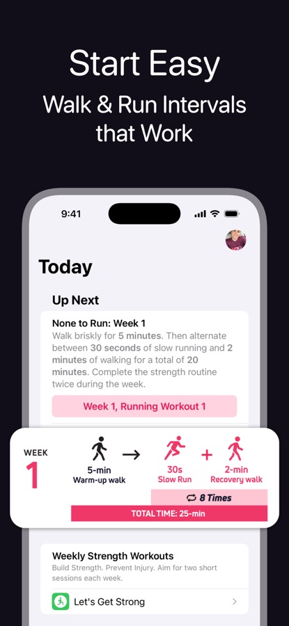 Running can be tough on the body, especially when you’re just starting. That’s why None to Run includes short, effective routines — with video demos — to build strength, improve mobility, and help prevent injury.