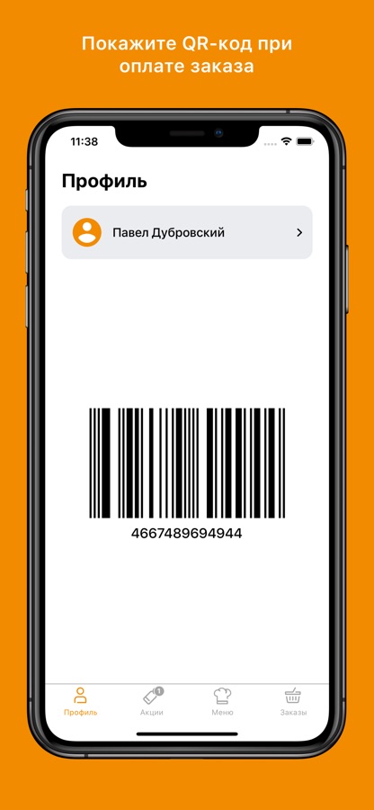 Скачайте приложение, получите свой уникальный QR-код и покажите его на кассе.