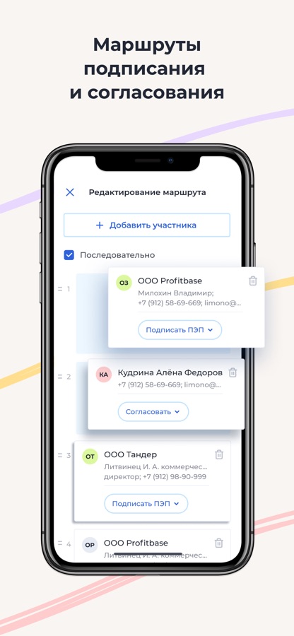 3. Отправить на подписание партнёрам и отследить статус документов.