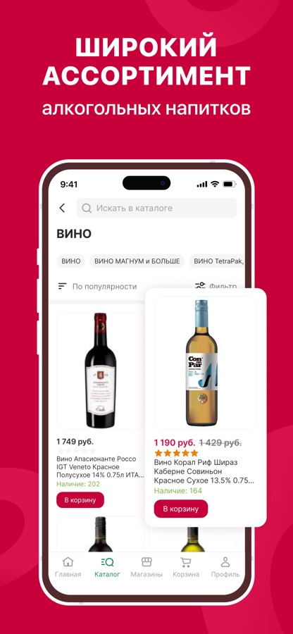 Предназначено для лиц старше 18 лет. Данный материал носит исключительно информационный характер и не является рекламой спиртных напитков. Мобильное приложение не предусматривает возможность онлайн-покупки и доставки товаров на дом. Продажа алкогольной продукции осуществляется в магазине.