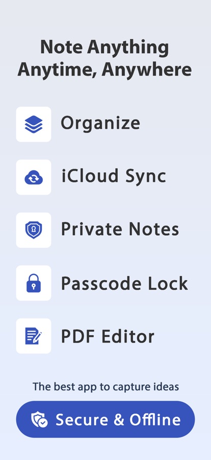 With iCloud Sync, your notes are safely stored in iCloud so you can access, restore, or delete them anytime, directly from the app.