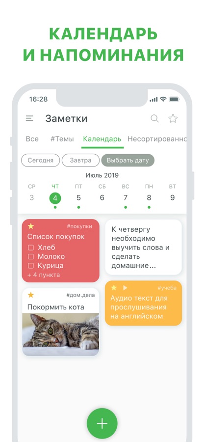 Заметки: блокнот и списки также заменит планировщик дел – для каждой заметки можно установить уведомления и напоминания (одноразовые или регулярные), а следить за дедлайнами поможет удобный календарь.