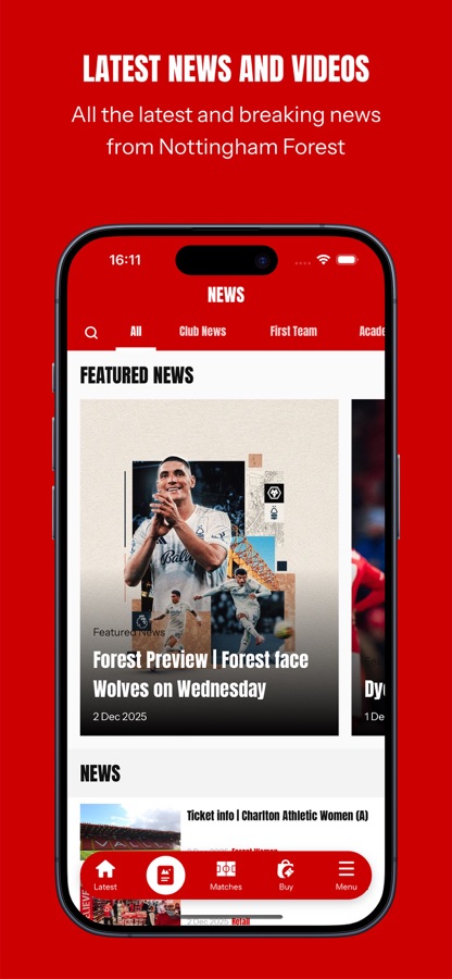 The official mobile app for Nottingham Forest — rebuilt and relaunched to provide an improved digital experience of following The Reds.
