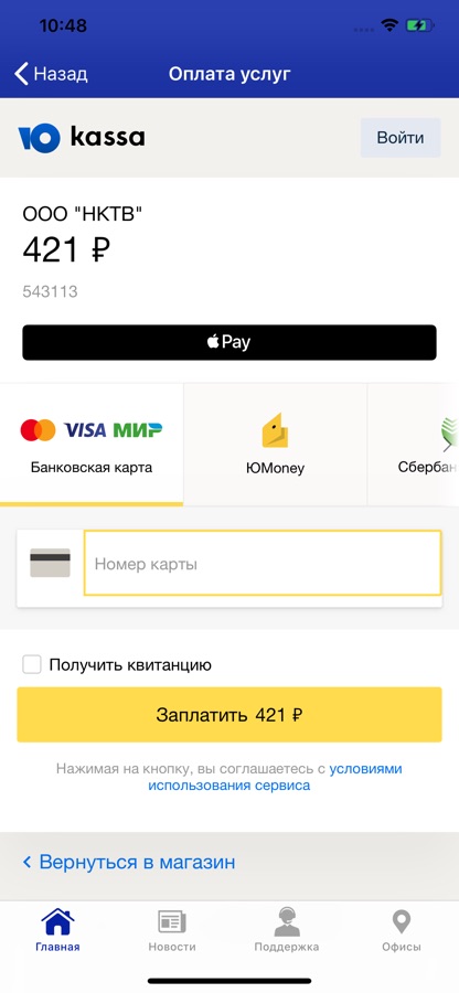 — Бесконтактно оплатить услуги с помощью Apple Pay, банковских карт, Яндекс.Деньги, Альфа-Клик и т.д.