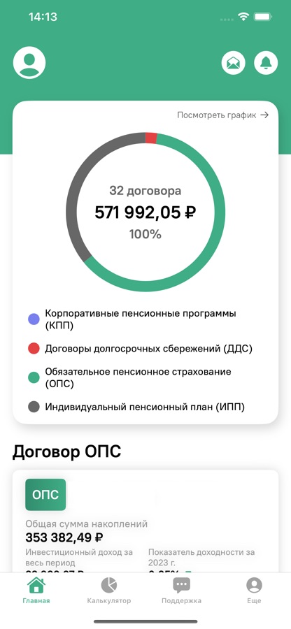Получать детальную информацию по всем действующим договорам: о сумме накоплений, размере выплачиваемой пенсии, инвестиционной доходности, о сумме потерь в случае досрочного перехода в другой Фонд