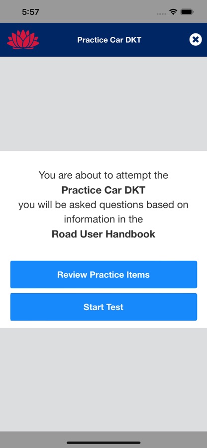 The practice tests look and operate like the real tests. You will be advised at the end if you passed or failed. The driver and rider tests have 45 questions and the boating tests have 50 questions.