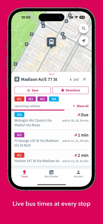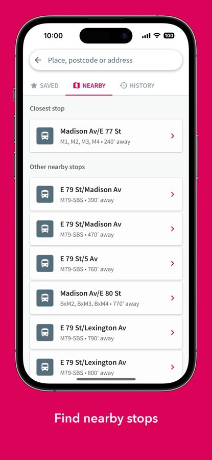 • Live times at all of New York’s 15,000+ bus stops