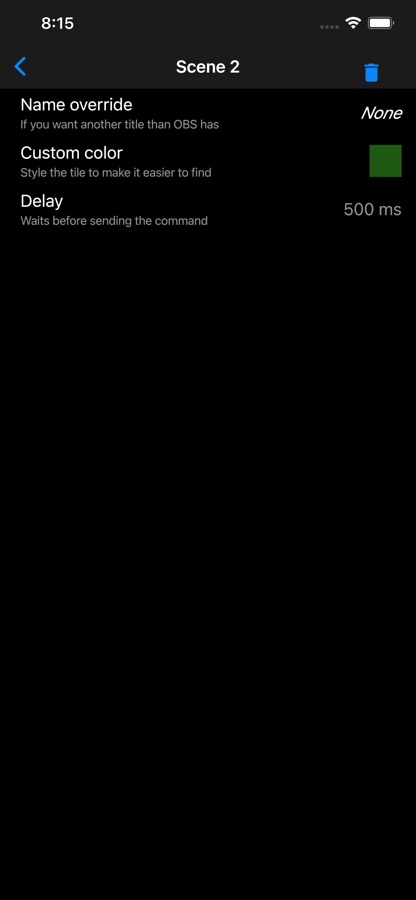 — Configure a delay for the commands in case you want to sync scene switches with camera delays