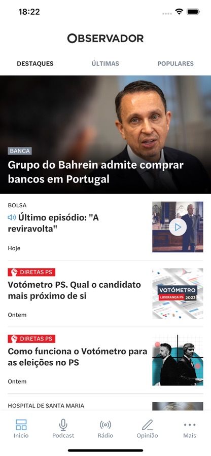 Encontre na app Observador o melhor conteúdo da atualidade e não perca nenhuma atualização sobre o que se passa no país e no mundo, com as notificações push. Acompanhe, em direto, a emissão da Rádio Observador, encontre todos os episódios de podcasts e conteúdos vídeo.