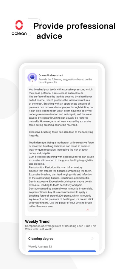 Leveraging an AI large language model, Oclean Care creates an anytime, anywhere platform for oral health consultation. Whether you encounter sudden oral discomfort in daily life or have questions about oral care knowledge, Oclean Care delivers timely professional answers and advice. Moreover, it fully caters to the oral health needs of your family and friends with multi-user support, ensuring everyone around you can access professional oral care services. Day or night, Oclean Care stays online 24/7 to guard yours and your family’s oral health.