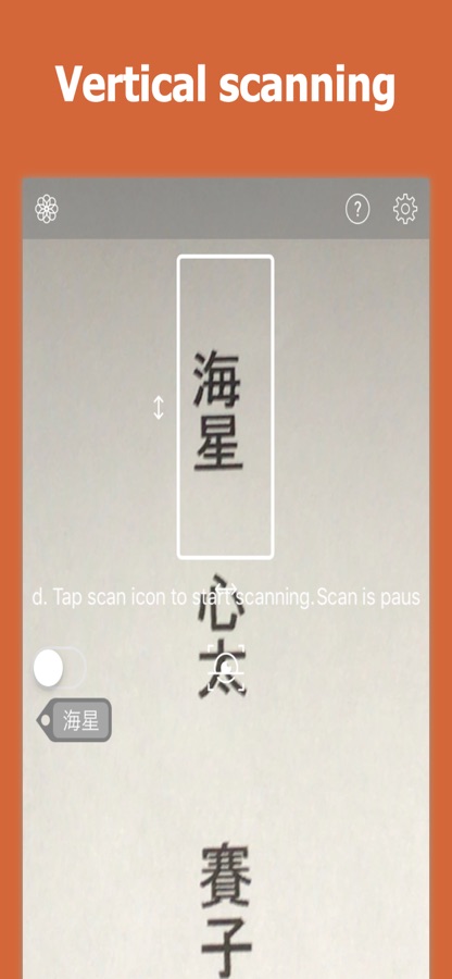 1. Поместите целевое слово в рамку и нажмите кнопку сканирования.