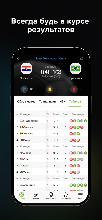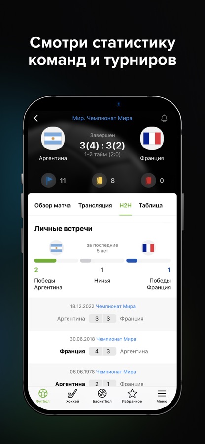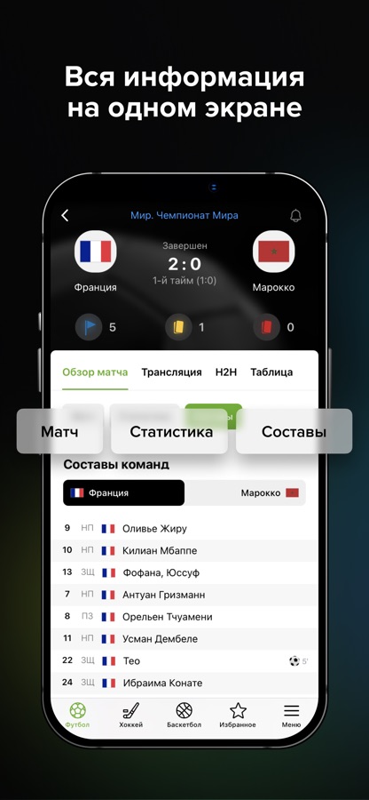 — Полная статистика актуальных матчей, чемпионатов и игр;