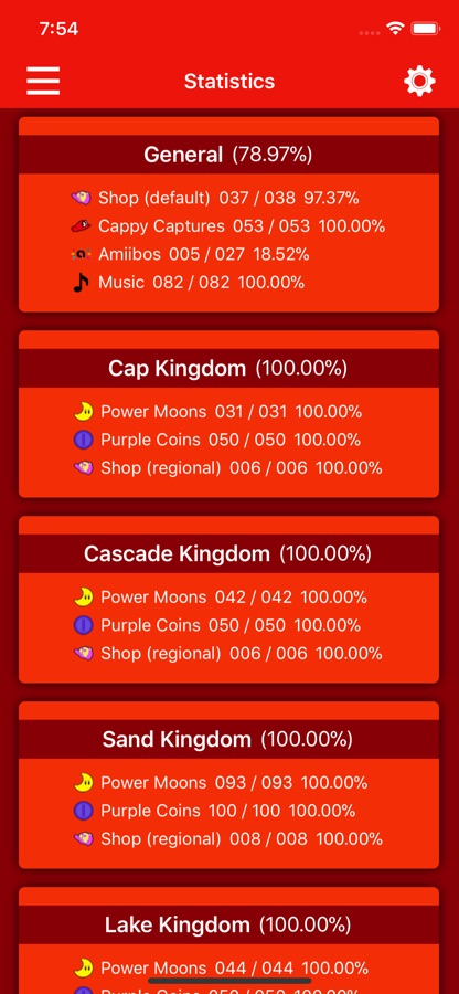 — Checklists for your collected Power Moons, Purple Coins, Crazy Cap Store items, Cappy Captures, Music Tracks and amiibos