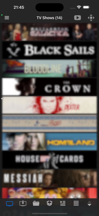 Additional actions can be accessed by long pressing items and remote control buttons.