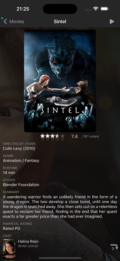— Displays movie poster and actor thumbs where available