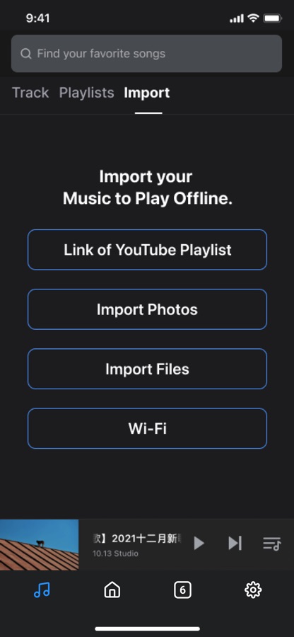 1. Music import, you can import any music or video you want from Photos, Files, Wifi, and you can listen to it offline.