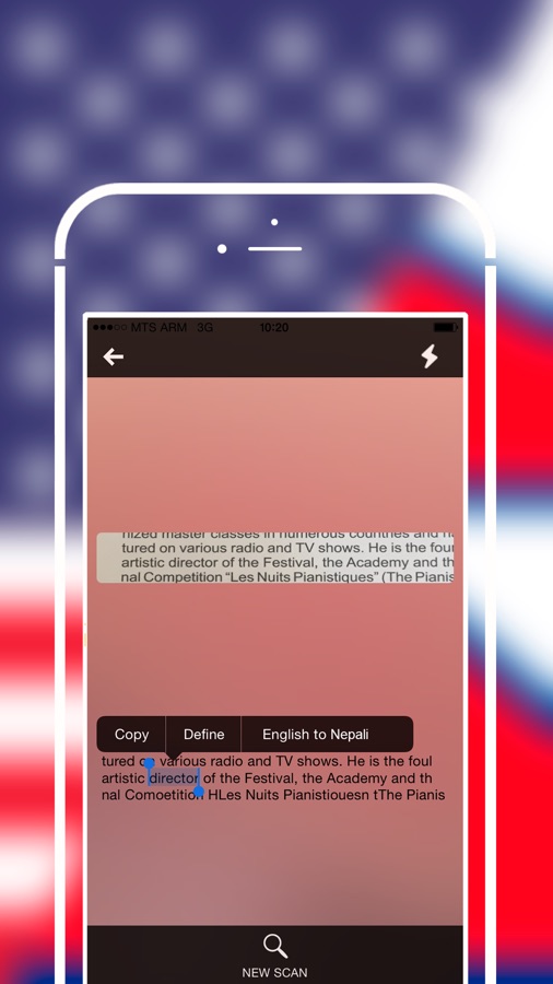 A possibility of detecting any kind of text from an image and providing our users with an adequate translation of the text. Moreover, you can have any text on the screen and with one click have it read out loud by the help of our audio pronunciation feature.