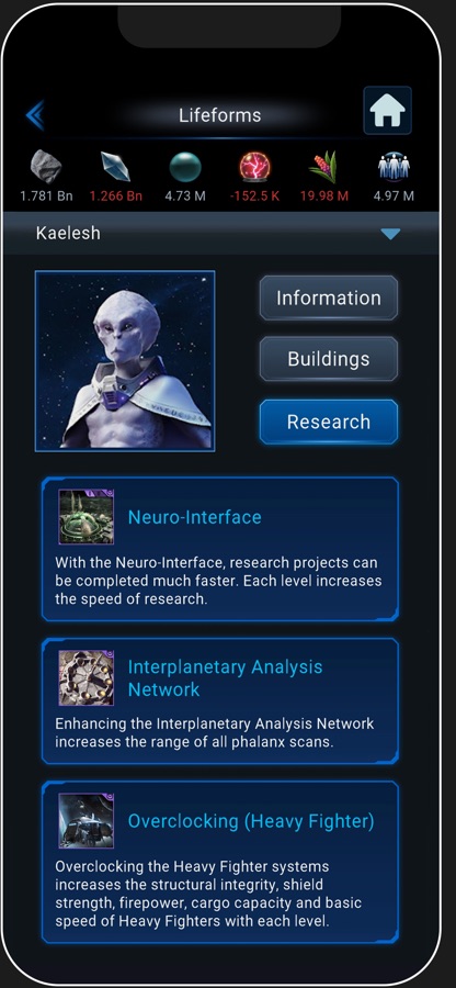 Игровой процесс в OGame вращается вокруг разработки, исследований и космических битв: