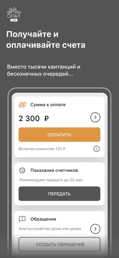 ОГНИ Home – мобильное приложение для резидентов жилых и апарт-комплексов «Бизнес-класса», находящихся под управлением Группы компаний «ОГНИ».