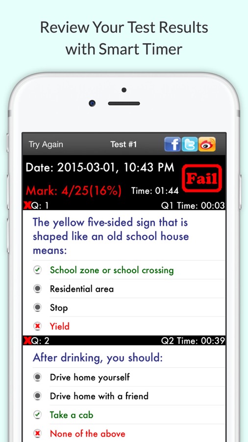 • Find out what questions you’ve done wrong after taking the test
