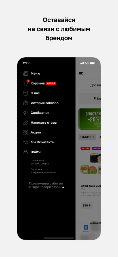В приложении вы можете просматривать актуальное меню, выбирать блюда и оформлять заказ прямо со смартфона — быстро и удобно.