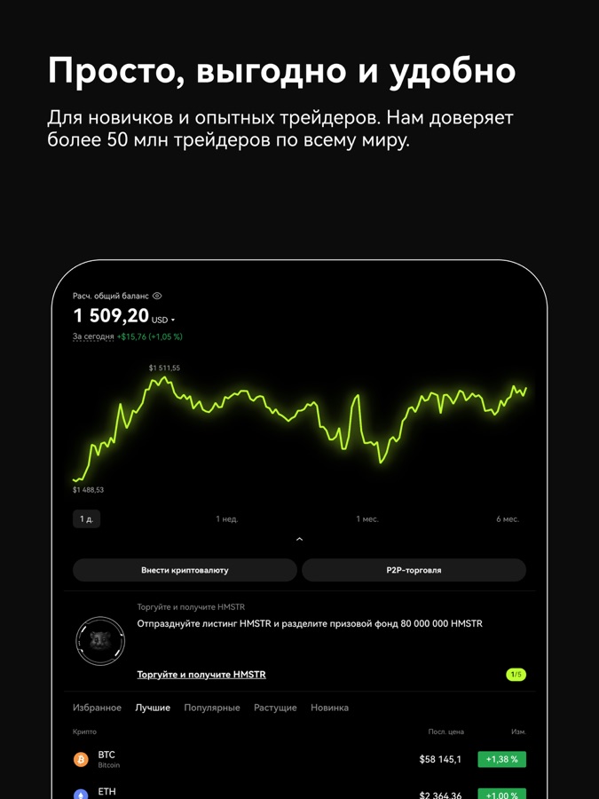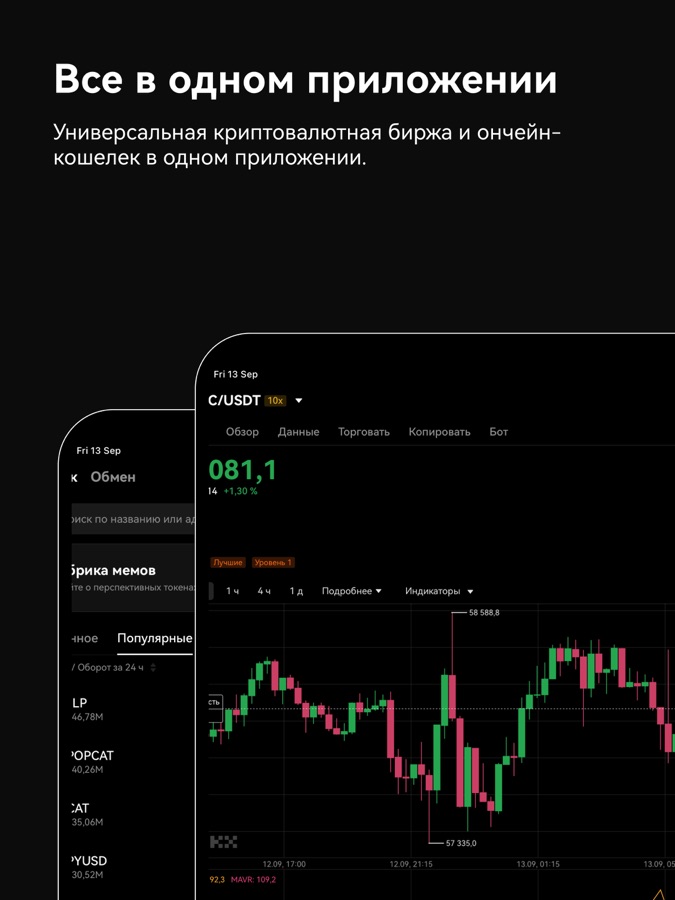 Ваш криптокошелек и торговая платформа в одном приложении.