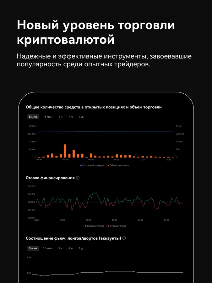 ● Инструменты технического анализа, продвинутая книга ордеров и графики на базе TradingView для профессиональных трейдеров.