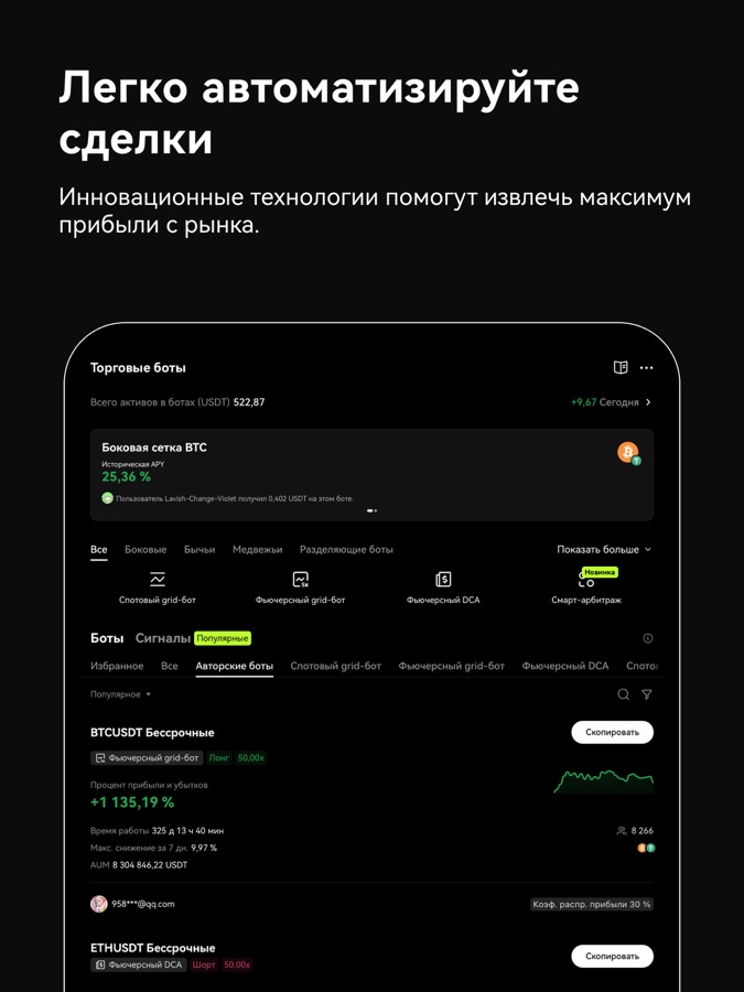● Копирование сделок опытных трейдеров на платформе копитрейдинга.