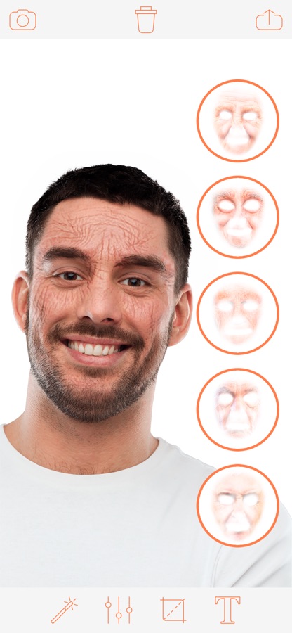 Технология автоматического распознавания лица сделает твою трансформацию более реалистичной. Используй коллекцию стикеров фоторедактора Old Face Changer для старения лица: готовые образы, прически, макияж, усы и бороды, цветные линзы, морщины на фото.