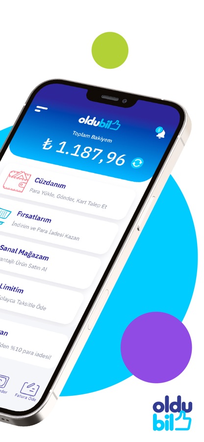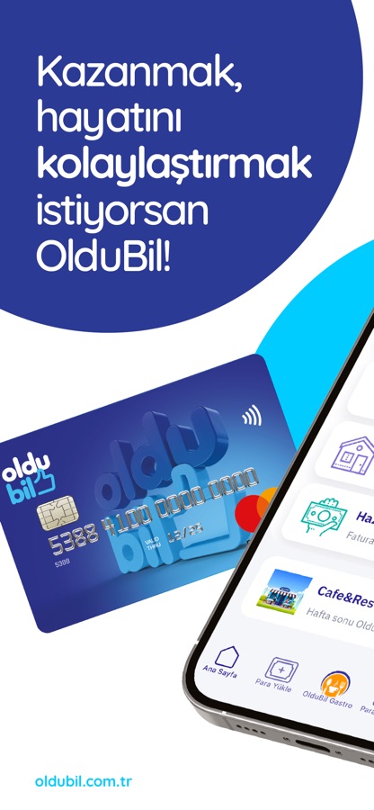 OlduBil, pek çok finansal işlemi kolayca yapmana olanak sağlayan MasterCard lisanslı bir ön ödemeli kart ve mobil uygulamadır. OlduBil ile banka hesabın olmasa bile internette ve tüm işyerlerinde güvenle alışveriş yapabilir, kurum faturalarını hızlıca ödeyebilir, 7/24 para gönderip alabilirsin. OlduBil’de hesap işlem ücreti ya da kart aidatı gibi giderler yoktur. OlduBil ile Türkiye’deki banka ve PTT ATM’lerini kullanabilir, hesabındaki parayı istediğin zaman çekebilirsin. OlduBil’in sana özel indirimlerden ve nakit iadesi avantajlarından yararlanmak için sen de uygulamayı hemen indir!