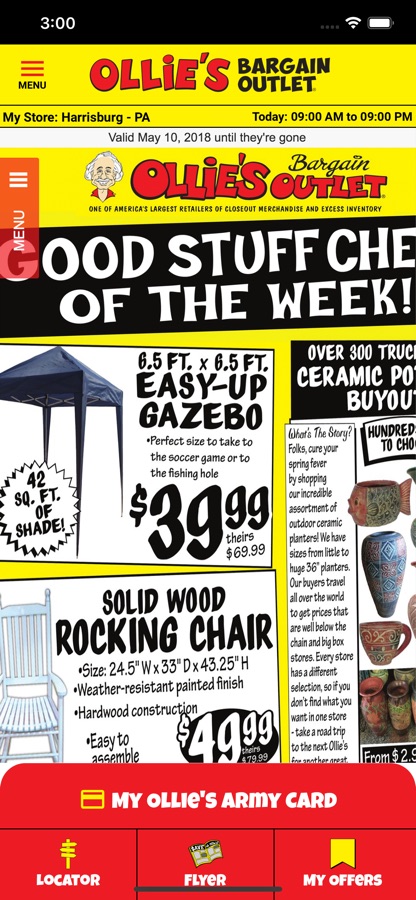 • Your Ollie’s Army Card and Offers are all here, just waiting to be scanned right from your phone! You can even view your Rank and Points or update your Profile information!