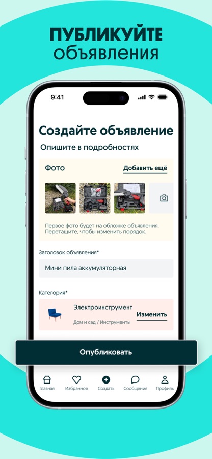 * Отслеживать избранные объявления и получать уведомления о похожих товарах и снижении цен