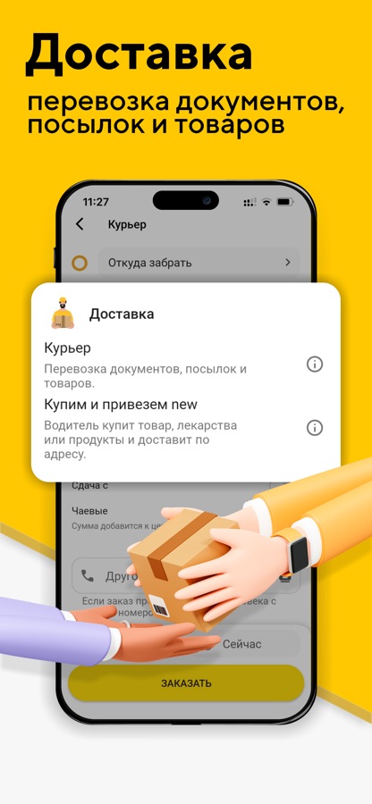 “Курьер” и “Купим и привезем” — быстрая доставка подарков, еды, документов, посылок, а также заказ продуктов и напитков из магазинов.